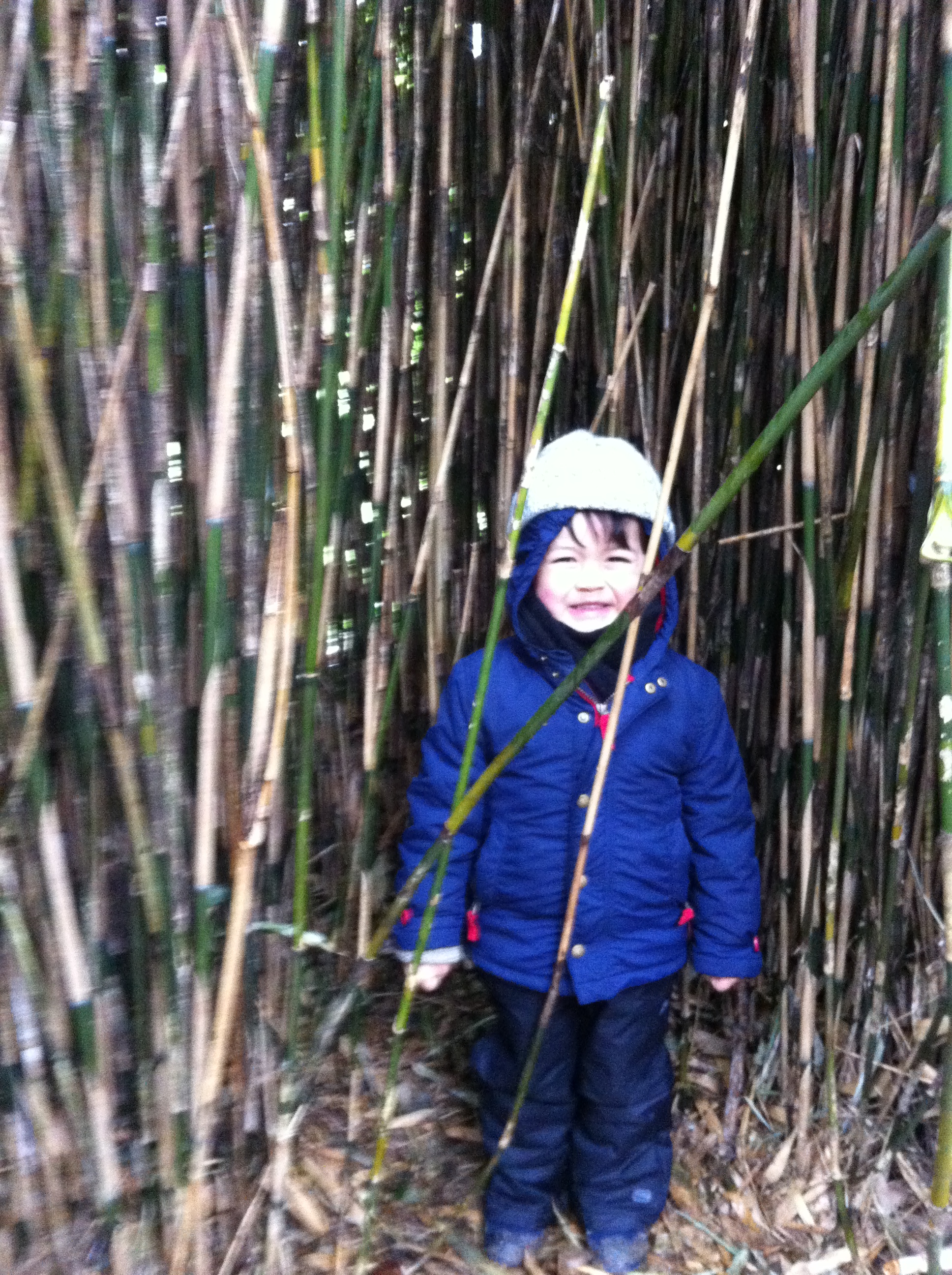 We have ventured out at least once a week (if not more) – though not always in the most clement of conditions. We picked the coldest day for a long time to take a stroll around Cambo gardens recently – at least with full body covering the wee one was happy to go adventuring, and find hidey spots wherever he could, the bamboo was an ideal little cave.